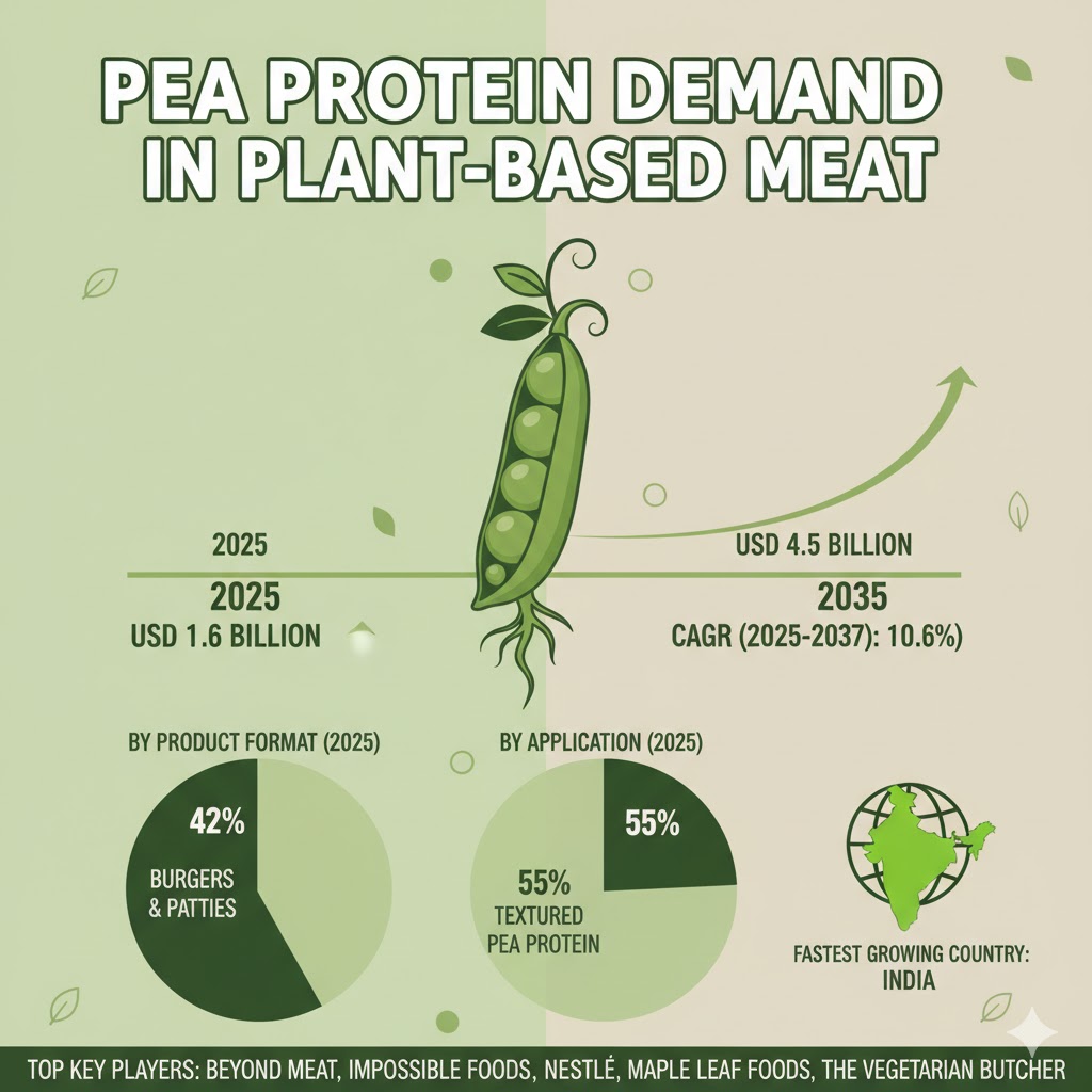 Global pea protein demand in plant-based meat projected to reach USD 4.5 billion by 2035, driven by sustainability, innovation, and evolving consumer diets.